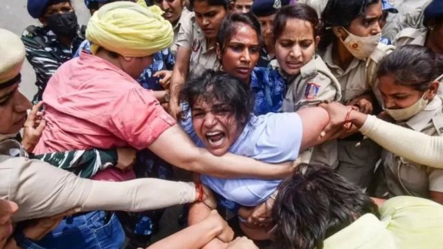 नए संसद भवन से तीन किलोमीटर दूर जंतर-मंतर से मार्च शुरू किया, तो पुलिस ने बैरिकेडिंग लगाकर उन्हें रोकने की कोशिश की. लेकिन फोगट बहनों और साक्षी मलिक ने सुरक्षा घेरे को तोड़कर आगे बढ़ने की कोशिश की. इसके बाद प्रदर्शनकारियों और पुलिस कर्मियों के बीच धक्का मुक्की और हाथापाई हुई.