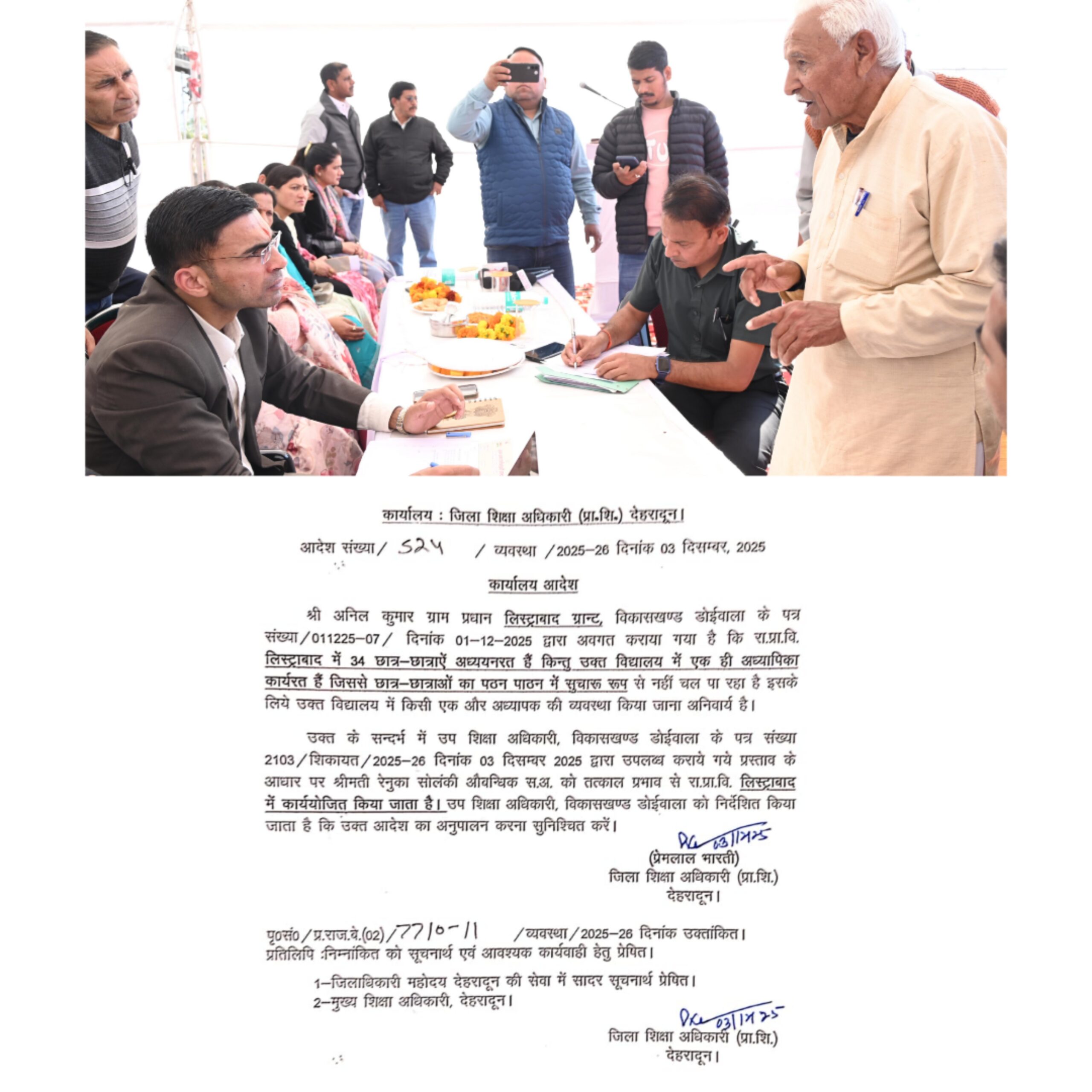 मुख्य शिक्षा अधिकारी को विद्यालय में शिक्षक तैनात करने के निर्देश दिए। जिसके क्रम में विद्यालय में एक अन्य शिक्षक की तैनाती कर दी गई है।