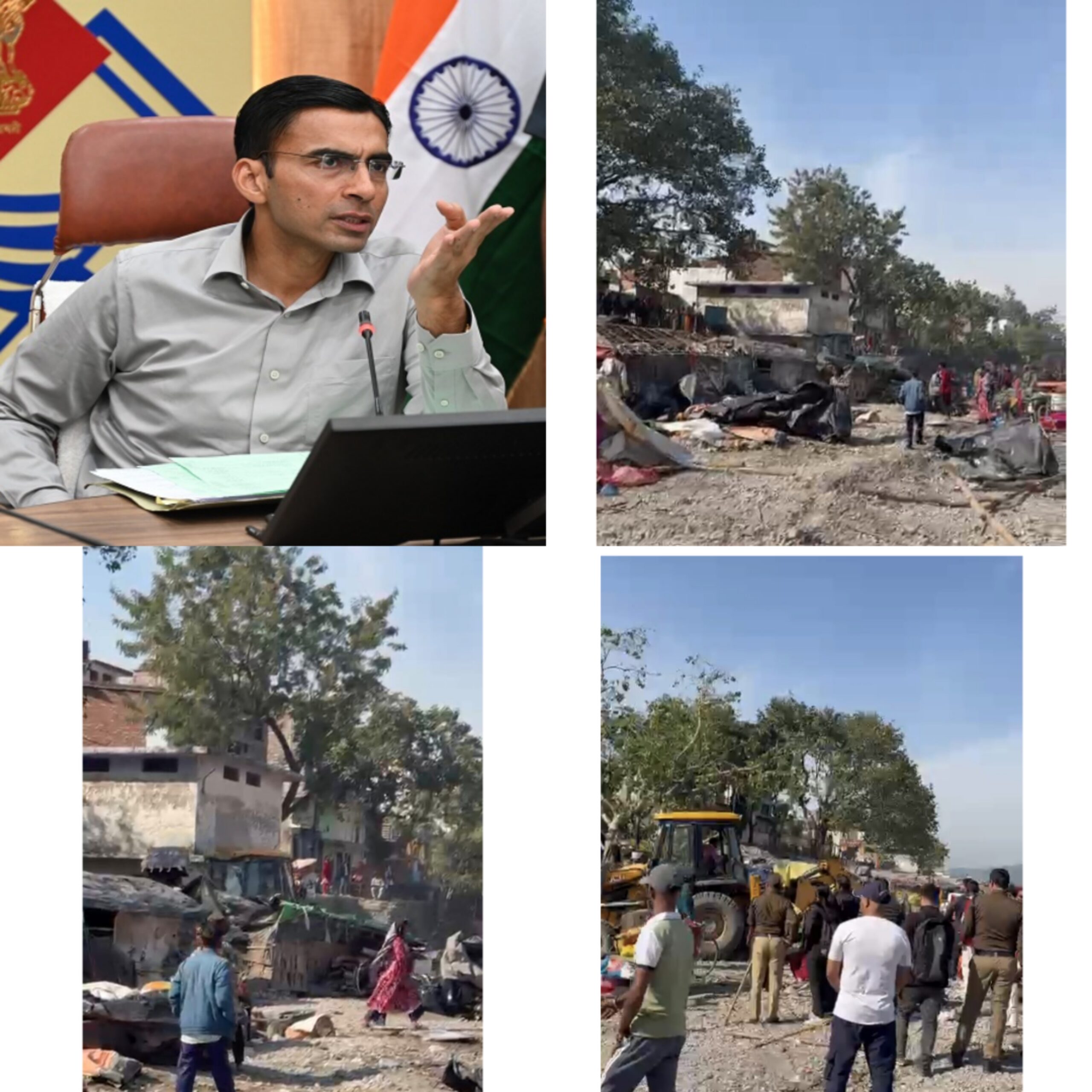 DM सविन बंसल के आदेश पर राजस्व विभाग और नगर निगम की संयुक्त टीम ने गंगा तट पर बनी 20 से अधिक अवैध झोपड़ियों को ध्वस्त किया।