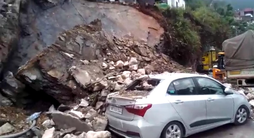 रुद्रप्रयाग। बदरीनाथ हाईवे पर आज दोपहर मकड़ी बाजार के पास अचानक चट्टान खिसक कर सड़क पर आ गयी, जिसने दो वाहनो कर चपेट मे ले लिया। शुक्र ये रहा की किसी भी सवार को गंभीर चोटे नही आई। वही सड़क के उपर एक आवासीय भी भूस्खलन की जड़ मे आ गया।