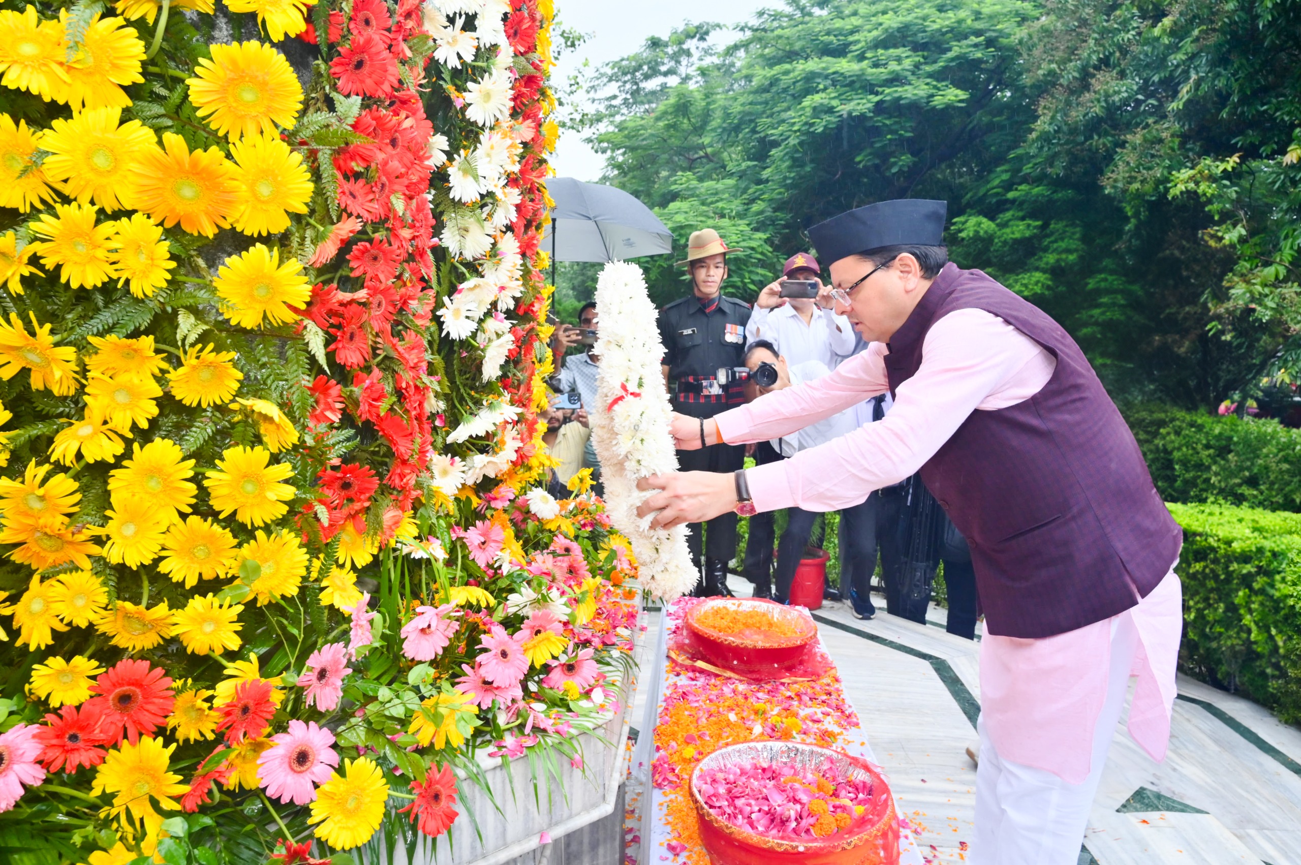 मुख्यमंत्री पुष्कर सिंह धामी ने कारगिल विजय दिवस (शौर्य दिवस) पर गांधी पार्क में आयोजित कार्यक्रम में शहीद स्मारक पर कारगिल शहीदों को श्रद्धांजलि अर्पित की। मुख्यमंत्री ने कारगिल शहीदों के परिवार जनों को भी सम्मानित किया। इस अवसर पर सैनिक कल्याण मंत्री गणेश जोशी, कैबिनेट मंत्री प्रेमचन्द अग्रवाल, विधायक सविता कपूर, श्री बृज भूषण गैरोला और निवर्तमान मेयर सुनील उनियाल गामा ने भी शहीद स्मारक पर कारगिल शहीदों को श्रद्धांजलि दी।