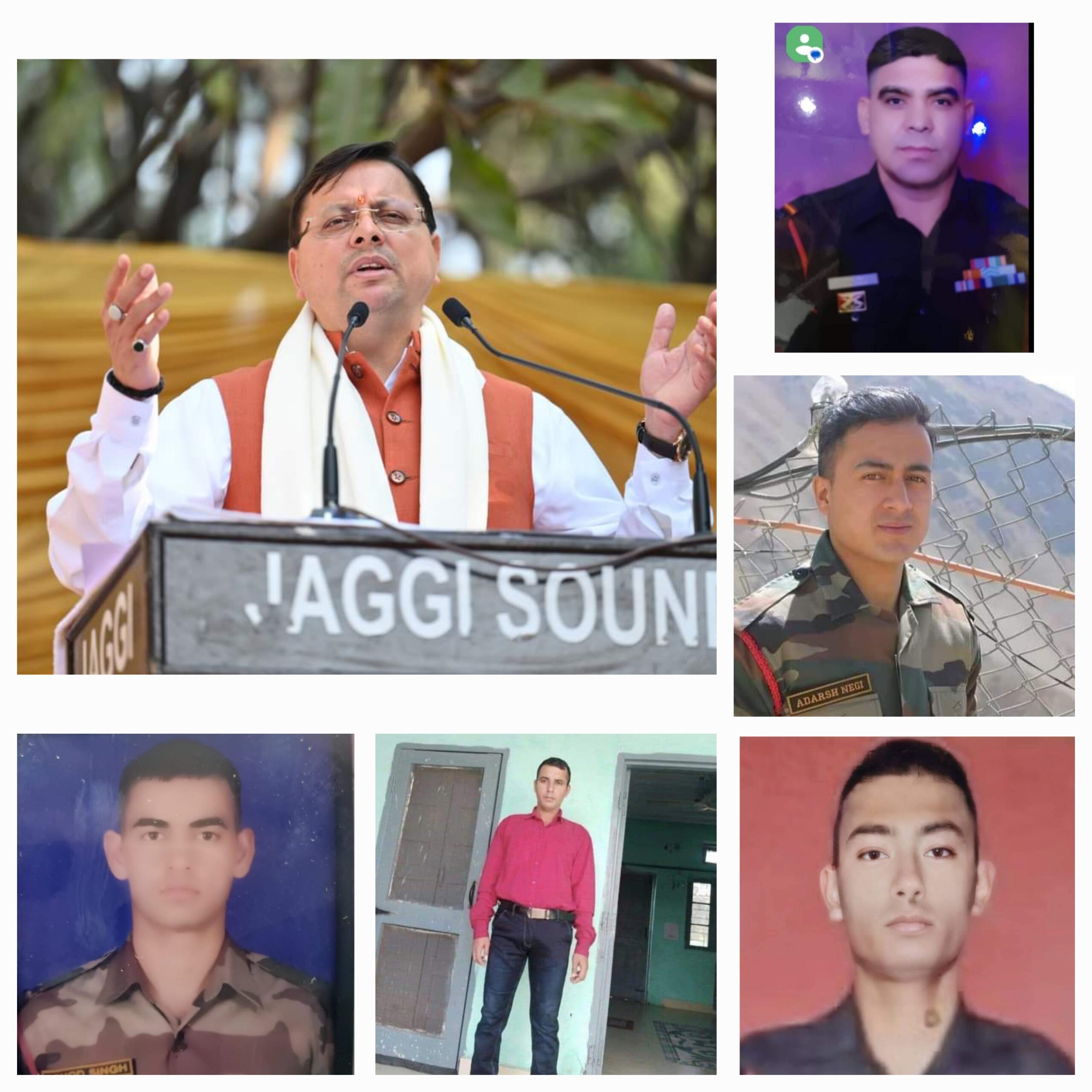 नायब सूबेदार आनंद सिंह रावत, हवलदार कमल सिंह, नायक विनोद सिंह, राइफलमैन अनुज नेगी, आदर्श नेगी, का सर्वोच्च बलिदान व्यर्थ नहीं जाएगा: धामी